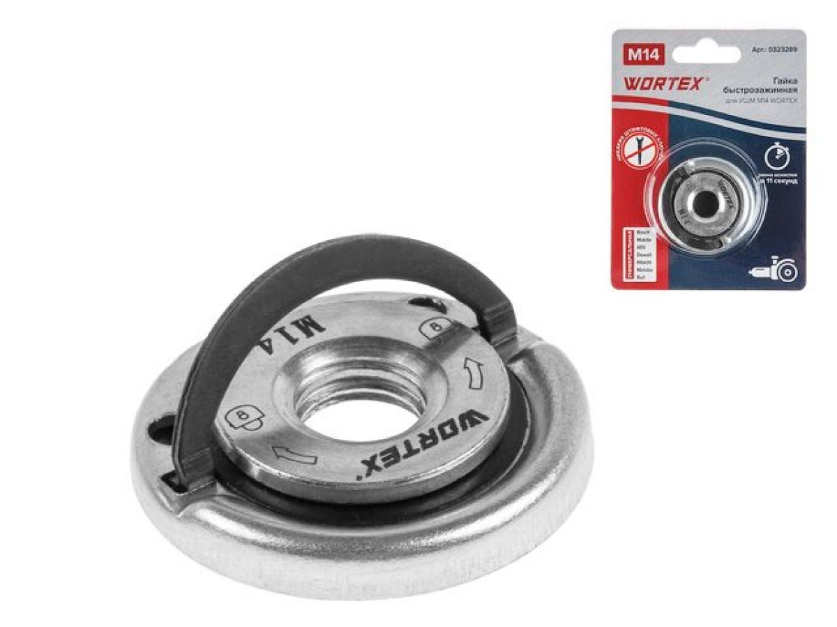 Гайка быстрозажимная для УШМ M14 WORTEX в блистере (Смена оснастки за 11 секунд, М14, 43х8 мм) 0323289