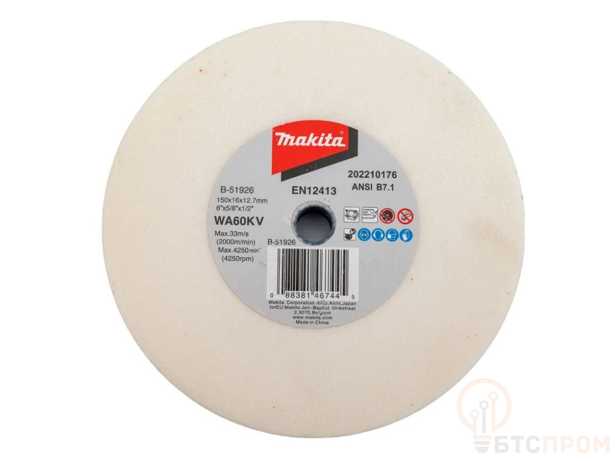 Диаметр диска 150 х 16 х 12.7 мм, толщина 16 мм, внутренний диаметр 12.7 мм, зернистость WA60