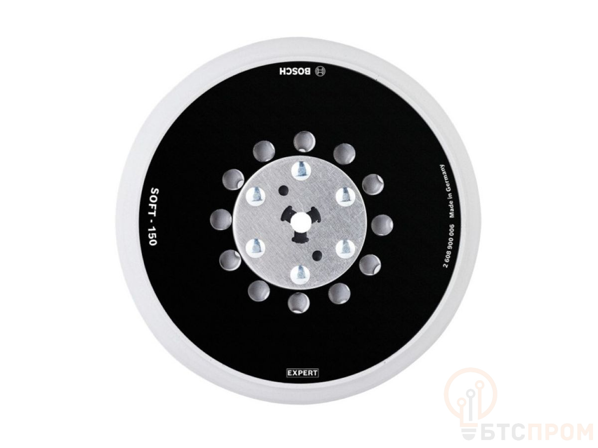 Опорная тарелка универсальная Bosch EXPERT Multihole, мягкая, 150 мм (2608900006) - это аксессуар для орбитальных эксцентриковых шлифмашин, предназначенный для шлифовки различных поверхностей, таких как краска, шпатлевка и штукатурка. Такая тарелка используется для установки шлифовальных листов или дисков на шлифмашину.