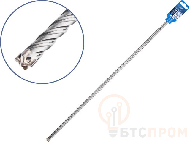 Тип и назначение: бур (сверло) для особо сложных работ при сверлении отверстий в железобетоне, бетоне, кирпичной кладке, камне, граните. Оснащен цельным X-образным твердосплавным наконечником Ceratizit повышенной твердости с четырьмя режущими кромками, который фиксируется особо прочным припоем, рассчитанным на высокие рабочие температуры и значительные ударные нагрузки. Центрирующий наконечник обеспечивает точное засверливание. 4 отдельные канавки быстро и эффективно удаляют шлам и повышают производительность. Тело сверла обладает большей жесткостью, а следовательно меньше подвержено колебаниям в процессе бурения, что улучшает точность просверленного отверстия, снижает износ тела бура и вибрации перфоратора. Подходит для интенсивных нагрузок;