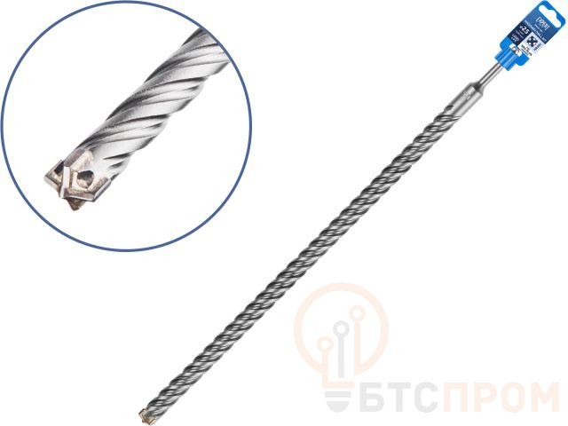 Тип и назначение: бур (сверло) для особо сложных работ при сверлении отверстий в железобетоне, бетоне, кирпичной кладке, камне, граните. Оснащен цельным X-образным твердосплавным наконечником Ceratizit повышенной твердости с четырьмя режущими кромками, который фиксируется особо прочным припоем, рассчитанным на высокие рабочие температуры и значительные ударные нагрузки. Центрирующий наконечник обеспечивает точное засверливание. 4 отдельные канавки быстро и эффективно удаляют шлам и повышают производительность. Тело сверла обладает большей жесткостью, а следовательно меньше подвержено колебаниям в процессе бурения, что улучшает точность просверленного отверстия, снижает износ тела бура и вибрации перфоратора. Подходит для интенсивных нагрузок;