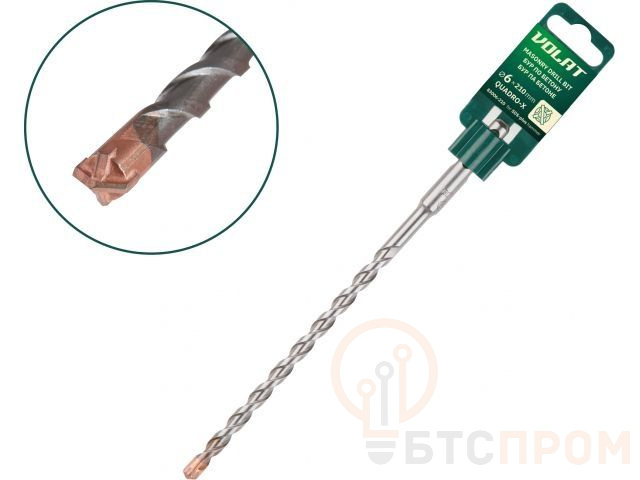 Тип и назначение: бур (сверло) для сверления отверстий в бетоне, кирпичной кладке, камне, граните. Двойной крестообразный наконечник облегчает процесс сверления и образует более ровное (правильной формы) отверстие в обрабатываемом материале;