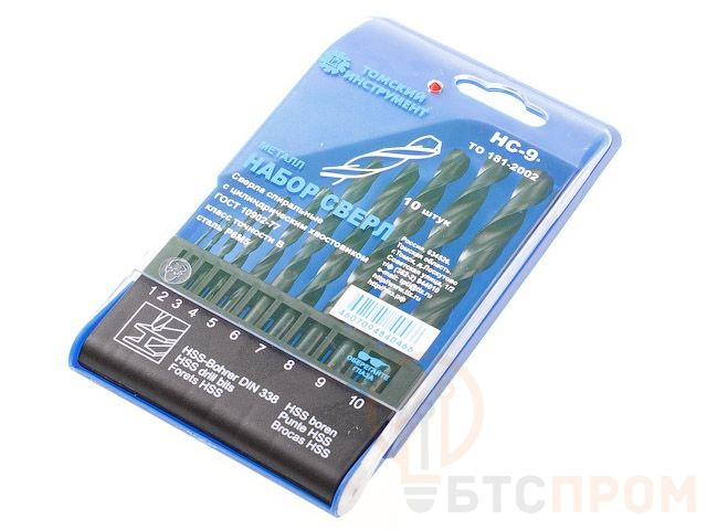 Набор сверл по мет. 10шт (1-10мм) НС-9 Р6М5 (ОАО "ТП Томский инструмент") (Есть аналог в мет. коробке. НС-9И.) НС-9
