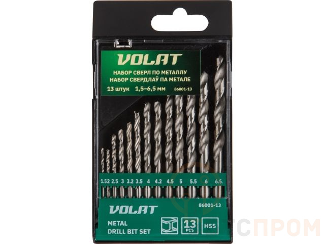 Набор сверл по мет. 13шт 1.5-6.5мм HSS ВОЛАТ 86001-13 фото в каталоге от BTSprom.by