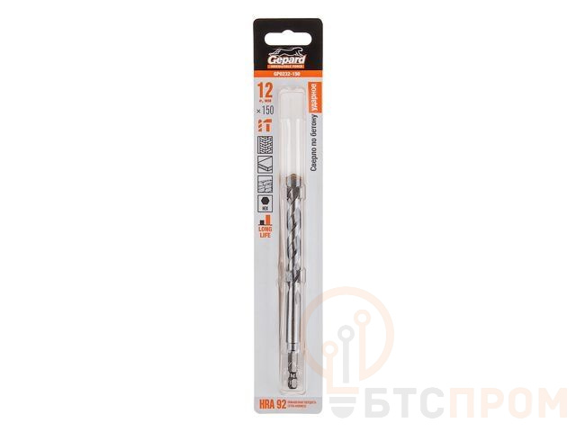 Сверло по бетону 12х150мм шестигр. GEPARD (GP0232-150) (усиленная пластина, Impact, победитовое ударное) GP0232-150