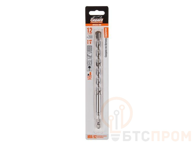 Сверло по бетону 12х200мм шестигр. GEPARD (GP0232-200) (усиленная пластина, Impact, победитовое ударное) GP0232-200