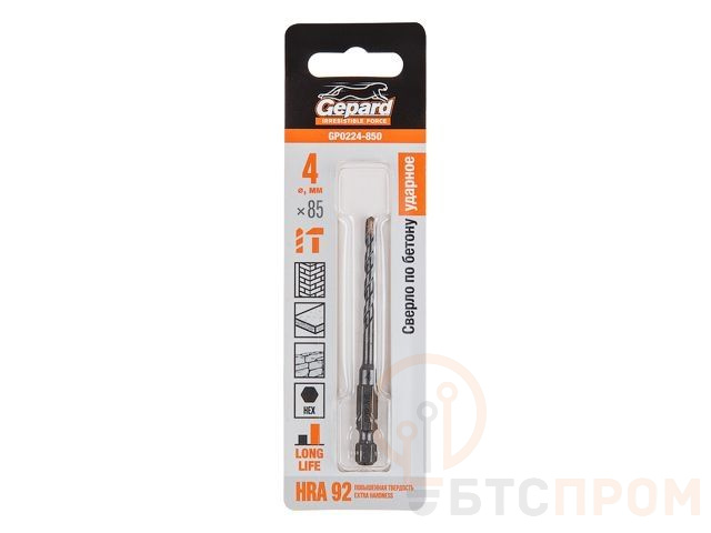 Сверло по бетону 4х85мм шестигр. GEPARD (GP0224-850) (усиленная пластина, Impact, победитовое ударное) GP0224-850