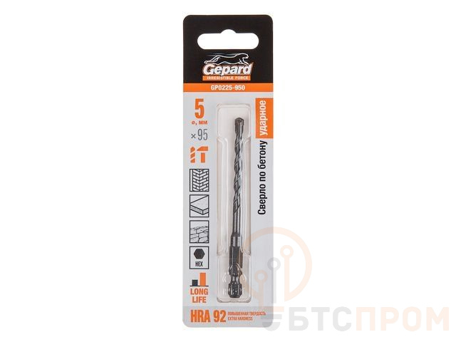 Сверло по бетону 5х95мм шестигр. GEPARD (GP0225-950) (усиленная пластина, Impact, победитовое ударное) GP0225-950