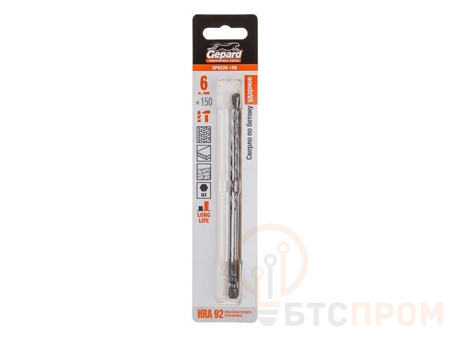 Сверло по бетону 6х150мм шестигр. GEPARD (GP0226-150) (усиленная пластина, Impact, победитовое ударное) GP0226-150