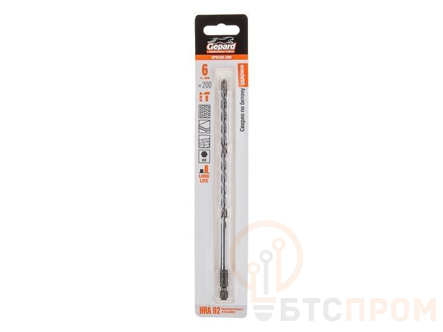 Сверло по бетону 6х200мм шестигр. GEPARD (GP0226-200) (усиленная пластина, Impact, победитовое ударное) GP0226-200