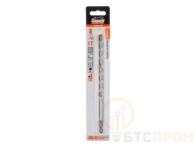 Сверло по бетону 8х200мм шестигр. GEPARD (GP0228-200) (усиленная пластина, Impact, победитовое ударное) GP0228-200