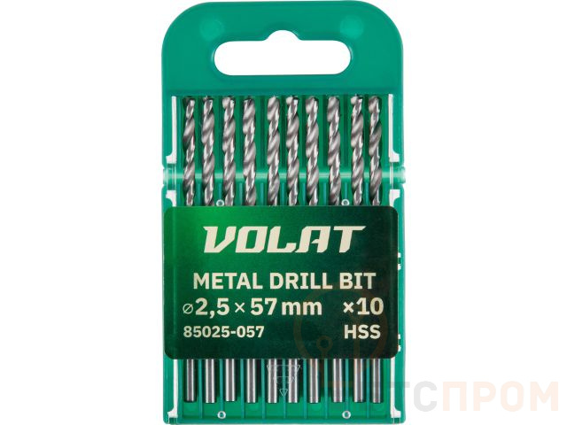 Сверло по металлу ц/х 2.5х30х57 мм HSS, комплект из 10-ти шт ВОЛАТ 85025-057 фото в каталоге от BTSprom.by