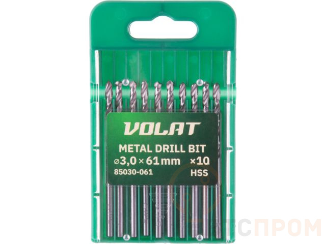 –Сверло по металлу ц/х 3.0х33х61 мм HSS, комплект из 10-ти шт ВОЛАТ 85030-061
