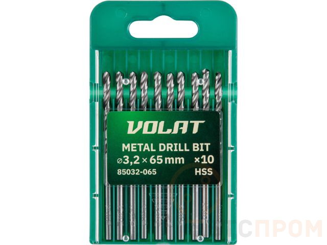 Сверло по металлу ц/х 3.2х36х65 мм HSS, комплект из 10-ти шт ВОЛАТ 85032-065 фото в каталоге от BTSprom.by