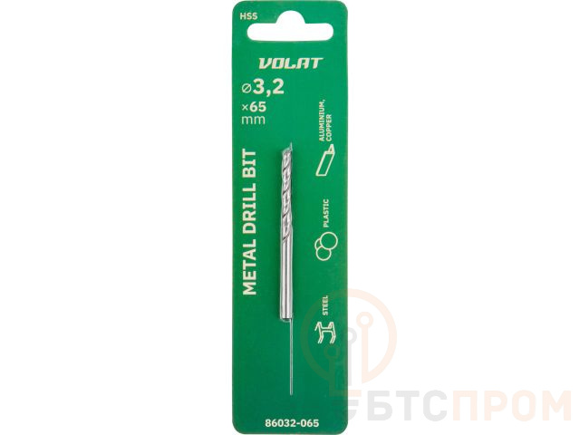 Сверло по металлу ц/х 3.2х36х65 мм HSS ВОЛАТ 86032-065 фото в каталоге от BTSprom.by