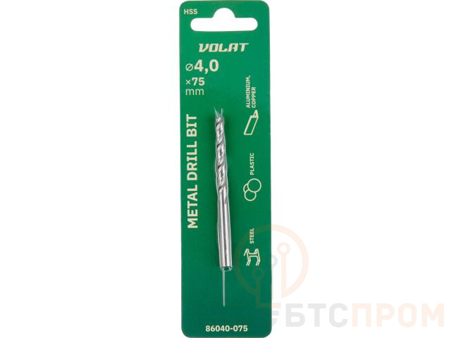 Сверло по металлу ц/х 4.0х43х75 мм HSS ВОЛАТ 86040-075 фото в каталоге от BTSprom.by
