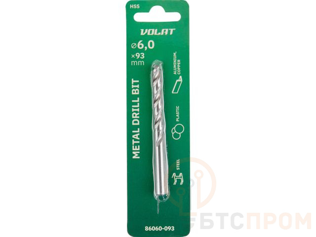 Сверло по металлу ц/х 6.0х57х93 мм HSS ВОЛАТ 86060-093 фото в каталоге от BTSprom.by