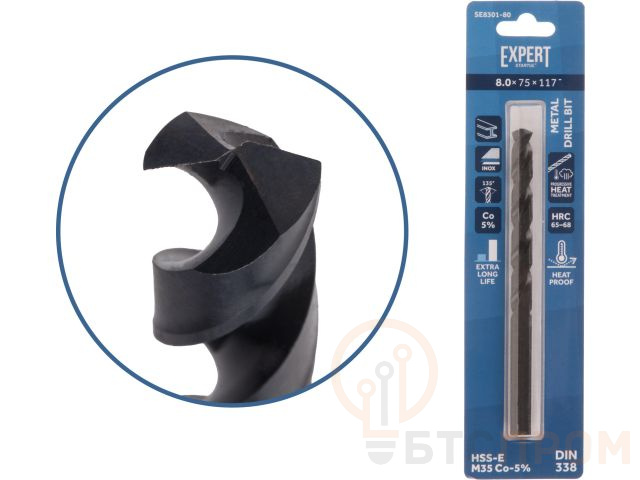 Назначение: для сверления отверстий в конструкционных углеродистых и легированных сталях, нержавеющих и жаростойких сталях прочностью до 1000 Nmm2, титана и его сплавов, бронзы, латуни, цветных металлах, чугуне, твердом пластике. Сверло спиральное изготовлено из высококачественной быстрорежущей стали с уже вышлифованным профилем. Выход стружки легче, температура нагрева и биение сверла в патроне меньше, стойкость режущей части выше. Отверстия имеют высокую точность. Подточка поперечных режущих кромок позволяет начинать сверление без предварительного засверливания центрирующим сверлом или кернения. Повышенный ресурс использования. Обладают повышенной производительностью, износостойкостью и красностойкостью. Максимально точное и аккуратное сверление. Дополнительная твердость и повышенная теплостойкость за счет содержания в сплаве кобальта и прогрессивной ступенчатой термической обработки. Подходят для профессионального использования;