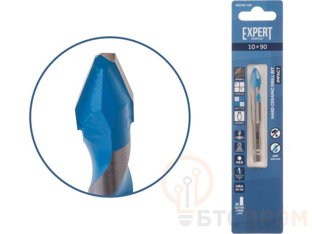 Тип и назначение: для сверления отверстий в керамограните, граните, мраморе и прочей твердой керамике, кафеле, керамической плитке. Твердосплавная напайка с несколькими острыми режущими кромками уменьшает износ и обеспечивает плавное сверление. Центрирующий наконечник для легкого засверливания без проскальзывания. Повышенная точность, скорость и ресурс использования;