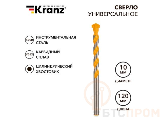 Материал вставки на конце сверла: карбидный сплав (YG6X)