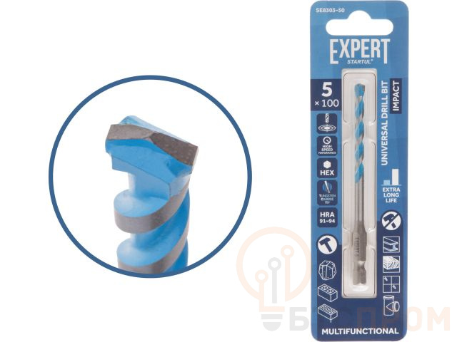 Сверло универсальное 5x100 мм MultiFunctional EXPERT STARTUL (победитовое, по мультиматериалам) SE8303-50