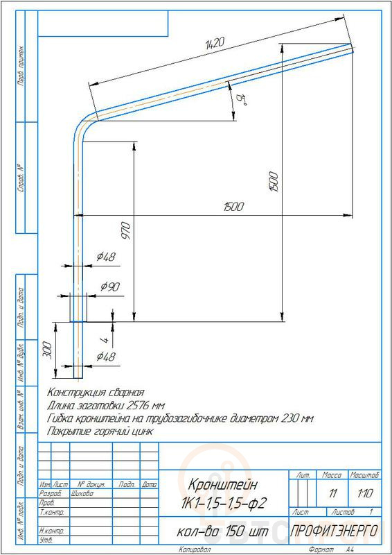 Кронштейн однорожковый "Стандарт" под UMECON 1.К1-1.5-1.5-ф2 D48мм гор. цинк фото в каталоге от BTSprom.by