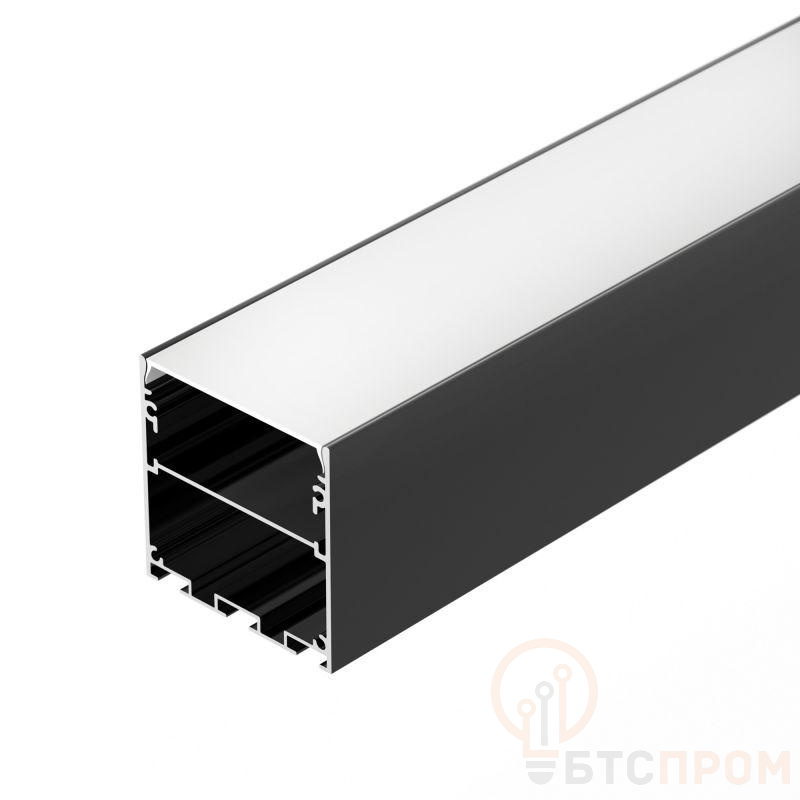 Алюминиевый профиль для светодиодных лент и линеек. Цвет - черный RAL9005 (порошковая окраска). Габаритные размеры (L?W?H): 2500x50x50 мм. Ширина площадки для ленты 41,2 мм. Отсек для БП 40х21,6 мм. Экраны, заглушки и другие аксессуары приобретаются отдельно. Цена за 1 метр.