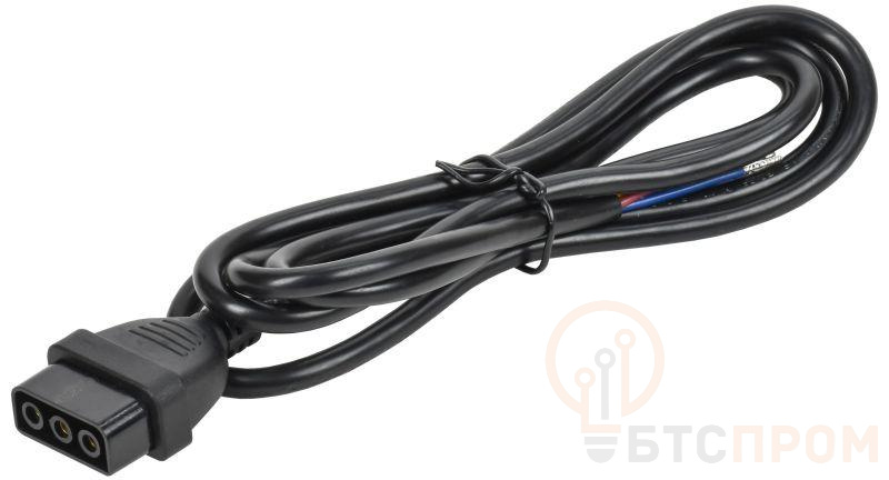 Кабель питания черного цвета с сечением проводников 3*0,75. Длина кабеля составляет 1,5 м. Применяется для подключения к сети линейных светильников серии 1020, 1022.