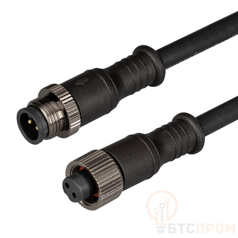 Водонепроницаемый IP67 прямой коннектор для соединения светильников ART-LUMILINE. Цвет черный. Длина 2000мм, сечение 0.75мм2 . Один конец - male коннектор 2pins O15, другой конец- female коннектор 2 pins O15