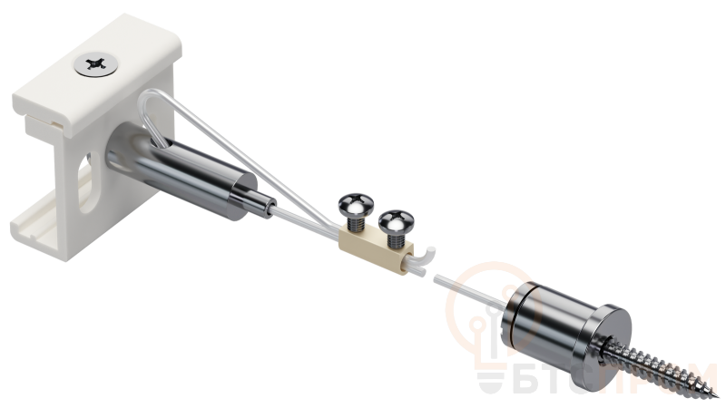 Комплект для подвесного монтажа предназначен для подвесной установки шинопровода Состав комплекта. стальной трос — 2м, винты и фитинги для троса, скоба.