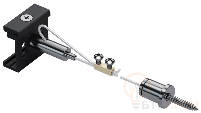 Комплект для подвесного монтажа предназначен для подвесной установки шинопровода Состав комплекта. стальной трос — 2м, винты и фитинги для троса, скоба.