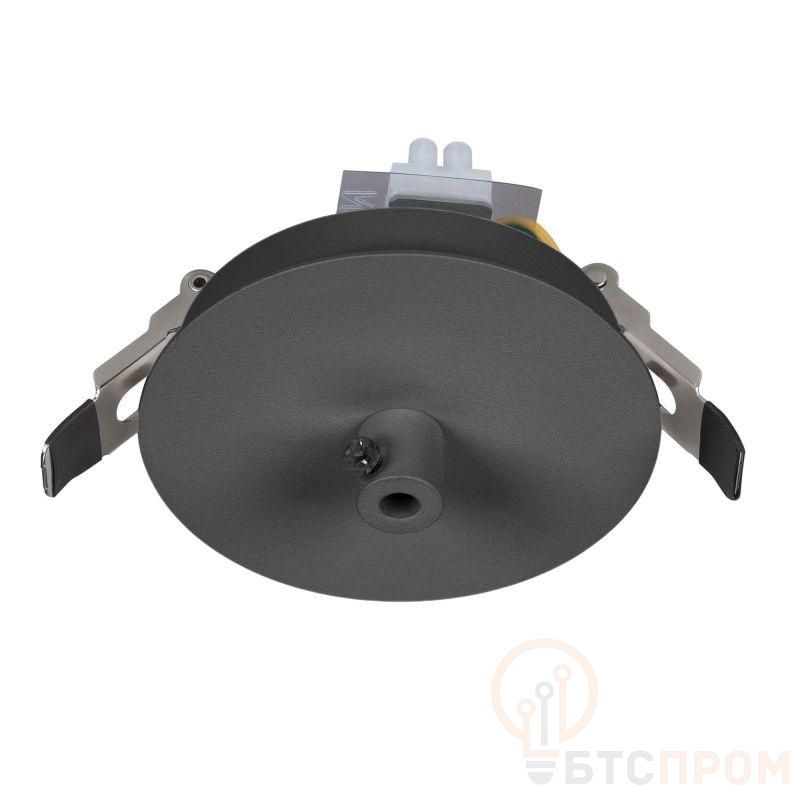 Потолочная встраиваемая чаша для подвесного монтажа светильников. Используется при подвесном монтаже. Материал сталь, цвет черный. Размеры O 90x50 мм. Размер врезного отверстия O 82 мм. Диаметр провода O 6,5 мм. 2 сменных клеммника в комплекте. Максимальный вес светильника 4,6 кг. Толщина поверхности, в которую встраивается чаша - 27 мм.