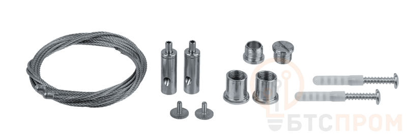 Состав комплекта. Стальной трос - 2 шт. Винты и фитинги для троса - 10 шт. Области использования. Подходит для светильников серий ДВО, ДПО, ДСП и ДСО.