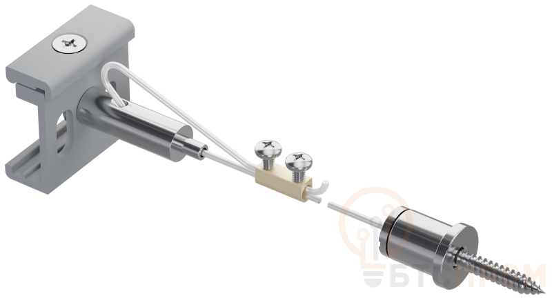 Комплект для подвесного монтажа предназначен для подвесной установки шинопровода Состав комплекта. стальной трос — 2м, винты и фитинги для троса, скоба.