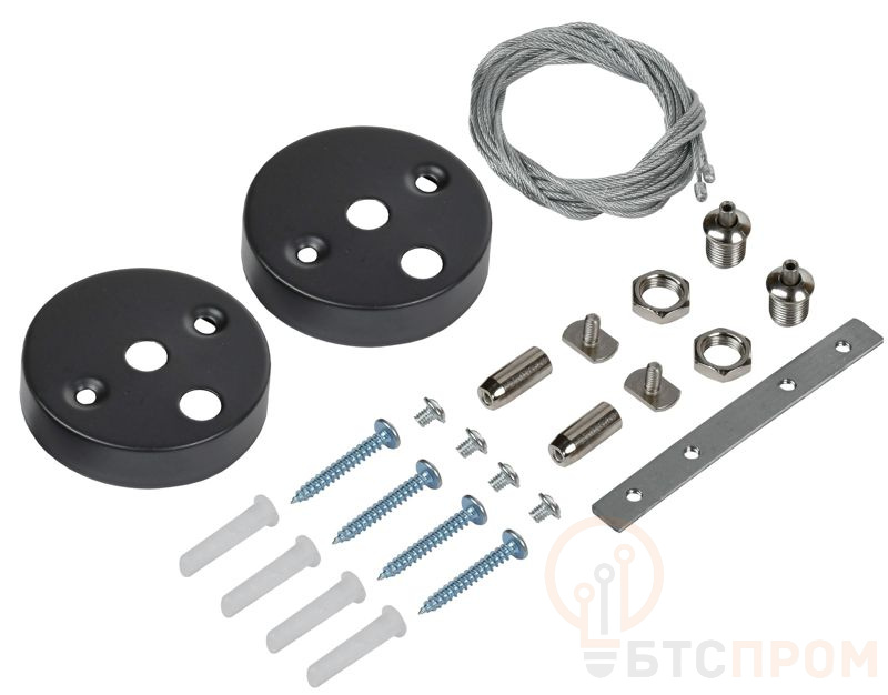 Комплект подвесного монтажа обеспечивает надежное потолочное крепление светильников. В комплект входят два троса длиной 1,5 метра. Возможность регулировки высоты подвеса светильников.