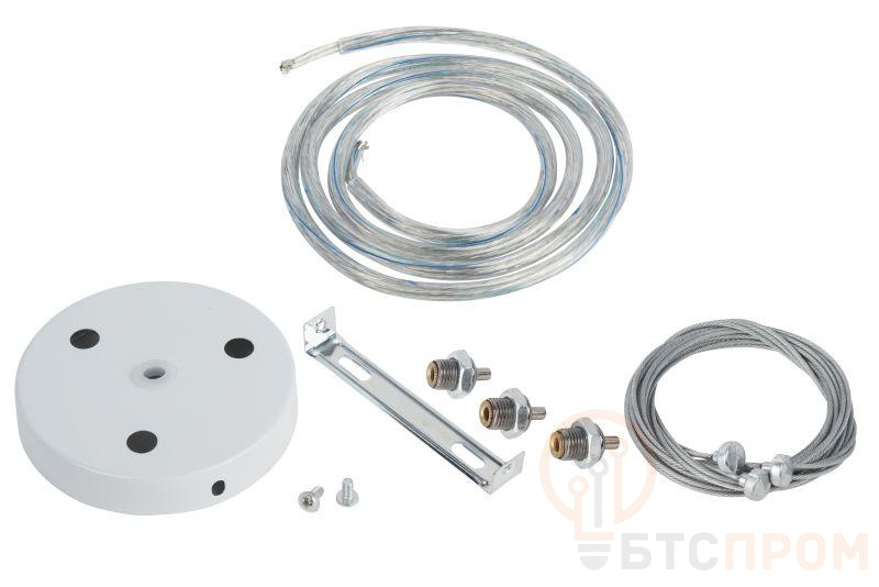 Понравившийся накладной светильник займет достойное место в комнате, если его закрепить тросовым подвесом SPB 6 компании ЭРА. Подвес позволяет произвести монтаж различных моделей настенно-потолочных светильников, стать дизайнером светового освещения своей квартиры или других помещений. В комплект входит основание с тремя цангами, 3 троса с карабинами для фиксации светильника и провод для подключения питания длиной 1,2 метра.