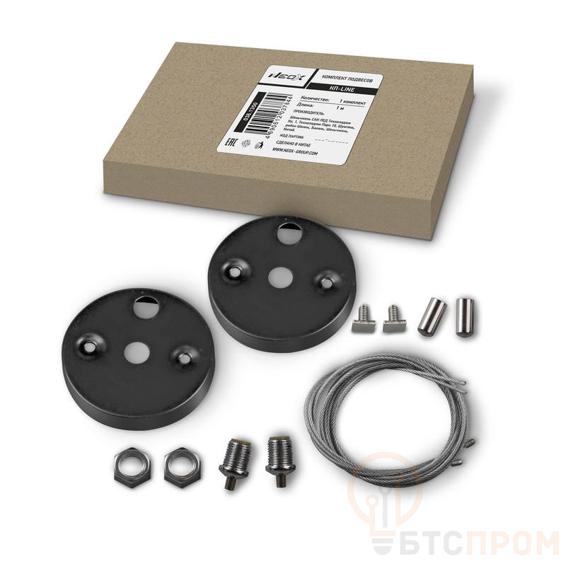 Комплект подвесов КП-LINE 1м NEOX предназначен для монтажа светодиодных светильников ДБО-Line на горизонтальных и наклонных поверхностях при помощи креплений на тросах.