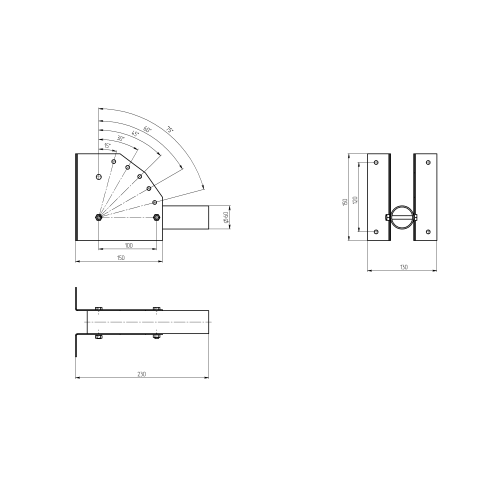 Кронштейн с переменным углом (шаг 15), для уличного (консольного) светильника, крепление болтами или бандажной лентой, вылет 250мм