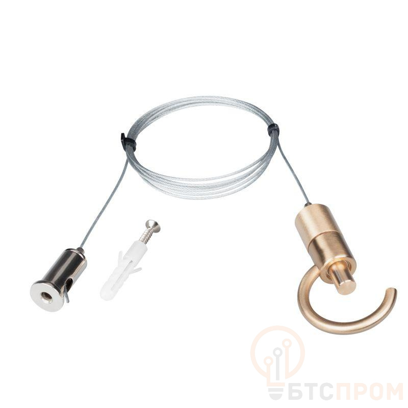 Подвес для светильника SP-TROPIC, длина 1500 мм. Цвет золотой. Комплект состоит из стального троса диаметром 1.5 мм и цангового зажима, декоративного кольца и прижимного стержня. Максимальная нагрузка до 25 кг.