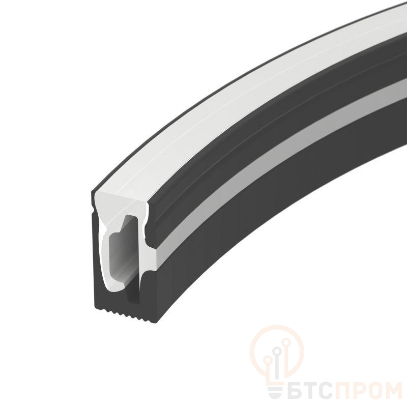 Цельнолитой силиконовый гибкий профиль, боковая часть - белая матовая, остальные стороны - черные матовые. Габаритные размеры 10000?6?12 мм. Гнется в плоскости. Для установки во влажных помещениях необходима герметизация при помощи двухкомпонентного эпоксидного герметика. Класс пылевлагозащиты – IP65 (при соблюдении технологии герметизации). Для лент шириной от 6 до 8 мм, высотой до 2,9 мм и мощностью до 10 Вт/м. Поставляется в катушках по 10 м. Цена за 1 м.
