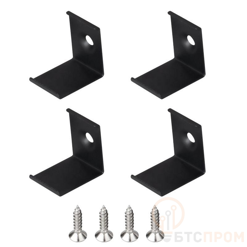 Комплект черных держателей профиля SL-KANT-H18. В комплекте 4 держателя, 4 шурупа. Материал - сталь. Цена за комплект.
