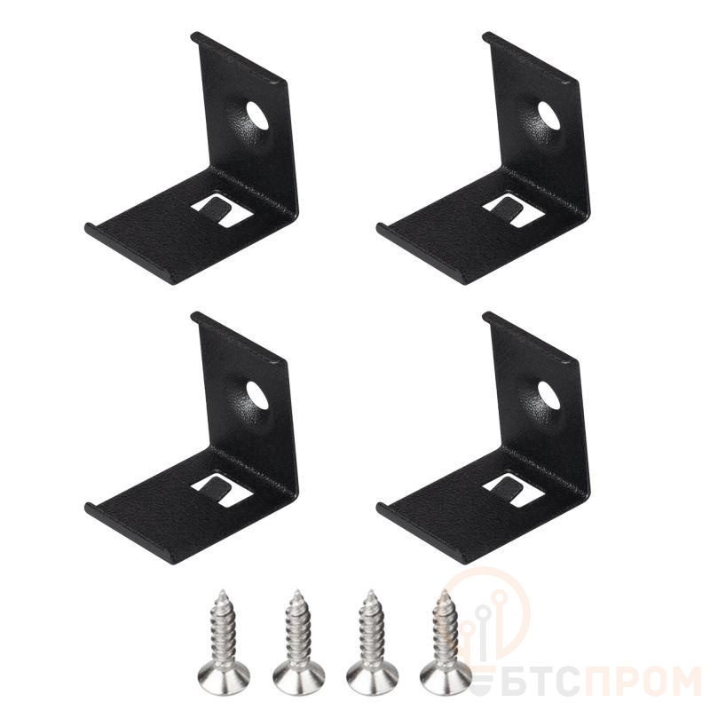 Комплект держателей профиля KANT-H20 черного цвета. В комплекте 4 держателя, 4 шурупа. Материал - сталь. Цена за комплект.