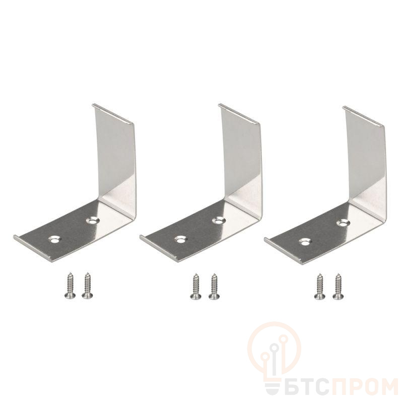 Комплект держателей профиля KANT-H55. В комплекте 3 держателя, 6 шурупов. Материал - сталь. Цена за комплект.