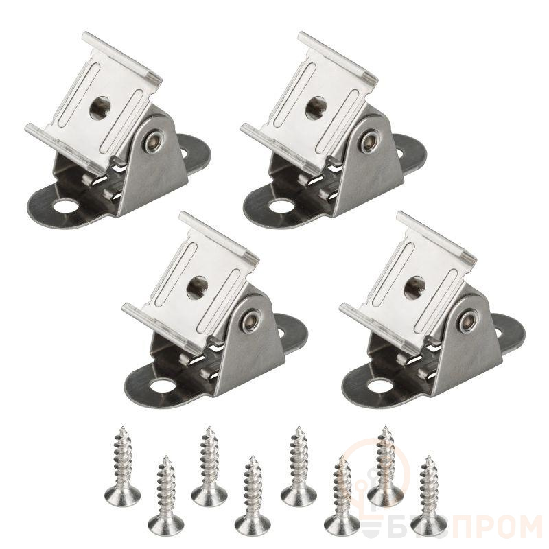 Комплект поворотных держателей профиля SL-SLIM. Фиксация профиля строго под любым углом в диапазоне 180 градусов, с возможностью изменения. В комплекте 4 держателя, 8 шурупов. Материал - сталь. Цена за комплект.
