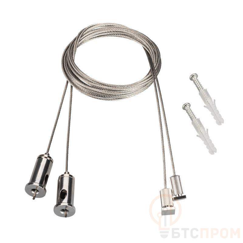 Подвес для профилей ARH-LINE-3750, ARH-POWER-W75, ARH-LINE-5050, ARH-LINE-B-3652, ARH-POWER-W154. Цвет - серебристый. В комплекте: трос 2 м - 2 шт., шуруп с дюбелем - 2 шт. Максимальная нагрузка на 1 трос 15 кг. Цена за комплект.