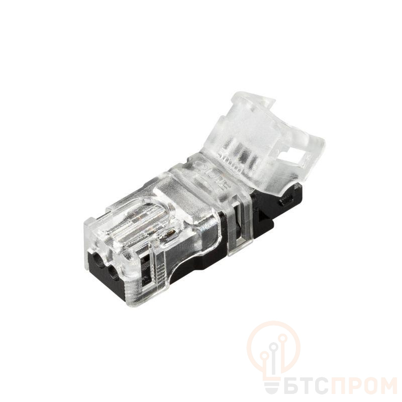Одиночный коннектор (без провода) для подключения питания к одноцветным открытым лентам шириной 5 мм. Очистка провода питания (0,34-0,75 мм2) от изоляции не требуется. Материал - прозрачный пластик. Максимальный допустимый ток 3 А, напряжение 3-24 В. Цена за 1 шт.