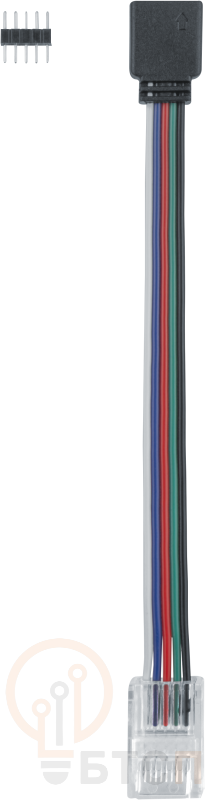 Корпус коннектора выполнен из белого пластика, оснащен проводниками для подключения и имеет степень защиты IP20, что делает его идеальным для использования в сухих внутренних помещениях. С его помощью можно легко создавать сложные осветительные системы, гирлянды и декоративную подсветку в жилых комнатах, торговых залах, на выставках и в рекламных конструкциях. Соединение обеспечивает стабильный контакт и сохраняет полную функциональность RGBW-ленты, позволяя независимо управлять белым и цветными каналами. Упаковка содержит 5 штук, что удобно для монтажа нескольких зон освещения.