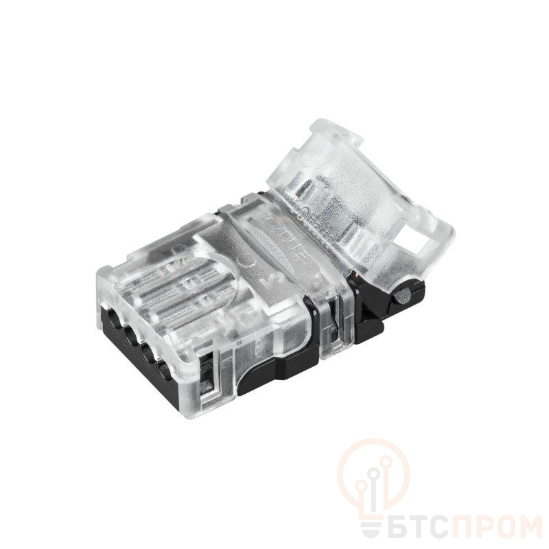Одиночный коннектор (без провода) для подключения питания к открытым IP20 светодиодным одноцветным лентам шириной 10 мм с высокой плотностью светодиодов. Материал - прозрачный пластик. Обеспечивает соединение без видимых разрывов. Максимальный допустимый ток 3 А, напряжение 3-24 В. Цена за 1шт.