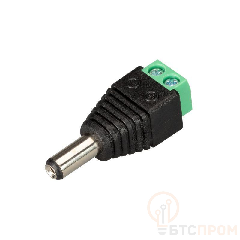 Клеммный коннектор для подключения светодиодных лент к сетевым адаптерам с DC-коннектором 5.5 мм (напряжение до 48 В). Одна сторона — клеммная колодка для провода ленты, вторая — DC-разъем («папа») для сетевого адаптера.