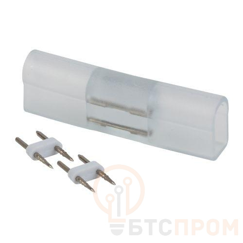 Коннектор светодиодной неоновой ленты необходим для соединения между собой отрезков ленты, наращивания ее длины. Коннекторы позволяют легко соединить между собой участки светодиодной ленты без применения специальных инструментов. Тип разъемов коннектора: игла-игла (жесткий, без провода). Предназначен для неоновых светодиодных лент с напряжением 220 Вольт. Степень защиты IP20.